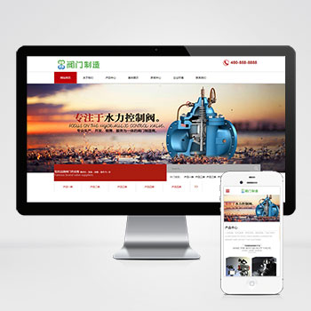 (自适应手机版)响应式机械阀门设备类网站天下云CMS模板 红色五金机械网···