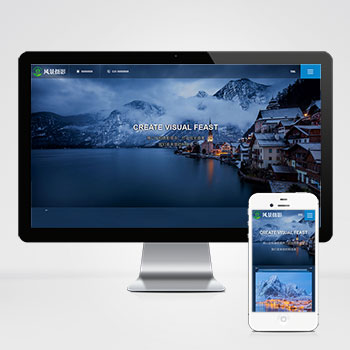(自适应手机端)深蓝色风景摄影网站天下云CMS模板 户外风景摄影机构网站···